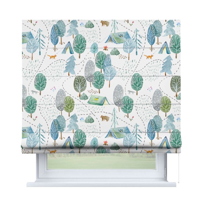 Римская штора для проёма «Лесистая местность», карниз верёвочный